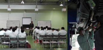 2月25日(木),つくば自動車整備専門学校において,本校の自動車・電機系列の2年次生23名が自動車のマフラーの交換取付実習及び車体の塗装実習を体験しました。