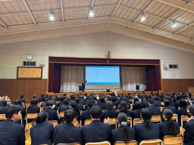 教育講演会では、Amazon元副社長の村井様を講師としてお招きし、「好奇心が人生そのもの」をテーマにご講演いただきました。Amazonのビジネスモデルやその考え方などをお話いただき、生徒は人生の道しるべについて考えながら熱心に話を聞くことができました。この講演を通じて学んだことを活かし、将来の進路実現に向けて努めてほしいと思います。