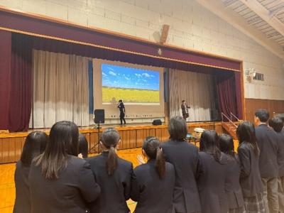 1年次生向けに高校生活におけるモチベーション向上を目的とした講演会が行われました。講師にはライセンスアカデミーの横関氏を迎え、高校生が目標を明確に設定し、小さな成功体験を積み重ねる重要性、そして将来を見据えることの意義についてお話していただきました。