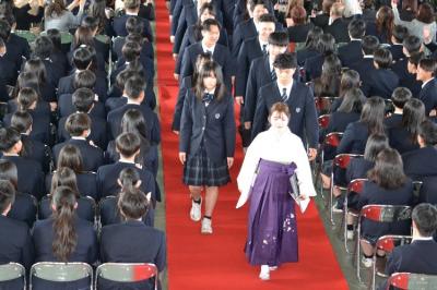 穏やかに晴れ渡った令和8年3月1日、第48回卒業式が催されました。在校生代表からは先輩方に対する感謝と祝福の言葉が贈られ、卒業生代表による「答辞」では、卒業後の新生活に対する大きな希望と決意が語られました。八千代高校一同、卒業生のこれからの活躍を期待しています!