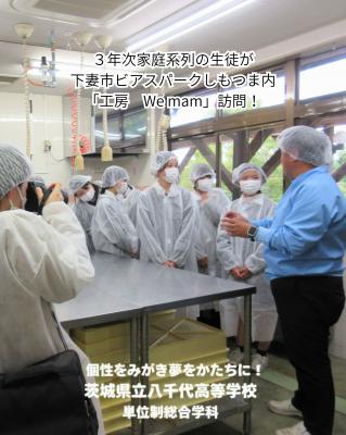 【3年次家庭系列】10月21日(火)下妻市ビアスパークしもつま内にある「工房 We mam」における地域貢献活動についての講話及び工場の見学を行いました。こちらでは、6つの工房で、地場の農畜産物を活用した商品開発、販売を行っているという説明を受けました。また、有限会社スズラン・ロードハウス 代表取締役の生井浩司様より、「すてないプロジェクト~『農産物の可能性を』を引き出すお手伝い~」というテーマでご講演いただきました。関係者の皆様、このような機会をいただき、ありがとうございました。※11月7日(金)に茨城新聞に掲載