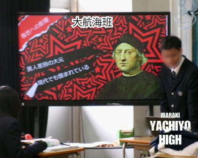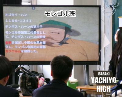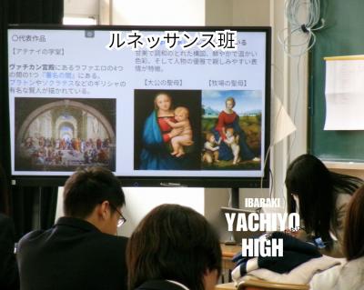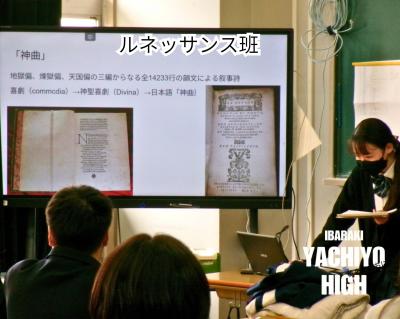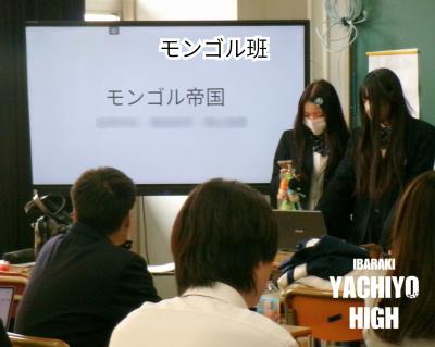 【授業参観】3年次世界史探究の時間では、4つのグループに分かれて、「モンゴル」「宗教改革」「大航海時代」「ルネッサンス時代」について調べ学習を行い、それぞれ発表を行いました。
