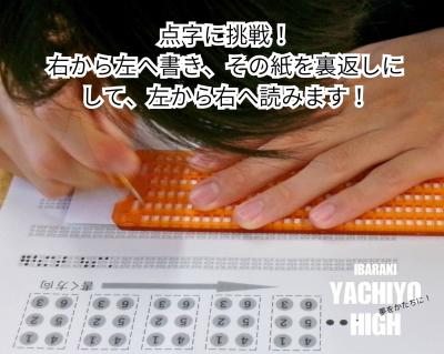 2年次福祉系列「コミュニケーション技法」の授業では、「点字」について学び、実際に点字を書いていました。点字を書くことはできるようになっていましたが、読むことは難しそうです。