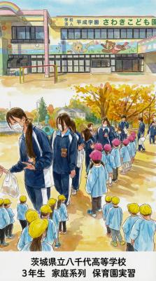【家庭系列】「3年課題研究」7月4日に「さわきこども園さん」で実施した「保育実習」の様子です!授業でグループ毎に作成した作成物を園児の皆さんにプレゼント!園長先生をはじめ、職員の皆さんにはお世話になりました。素晴らしい経験をさせていただきました。