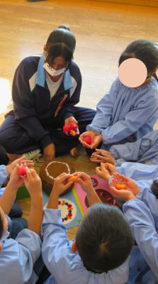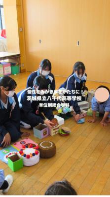 【3年次家庭系列】「課題研究」の授業で企画・製作した「知育玩具」を持参して、保育園実習を行いました。準備期間から工夫を凝らし、手作りおもちゃを使い園児たちと交流し、当日は笑顔と活気に満ちた時間を過ごしました。貴重な経験となりました。さわきこども園の園児の皆さん、職員の皆さん、保護者の皆さん、ありがとうございました。